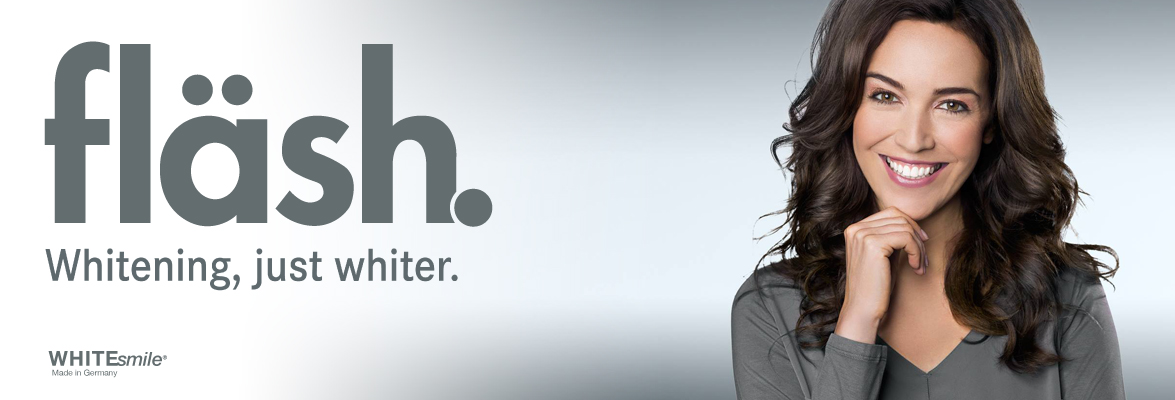 The professional whitening product we use to whiten your teeth is called fläsh. This product has a whole range of different types of bleaching material – from home whitening kits to in-chair whitening with immediate results.